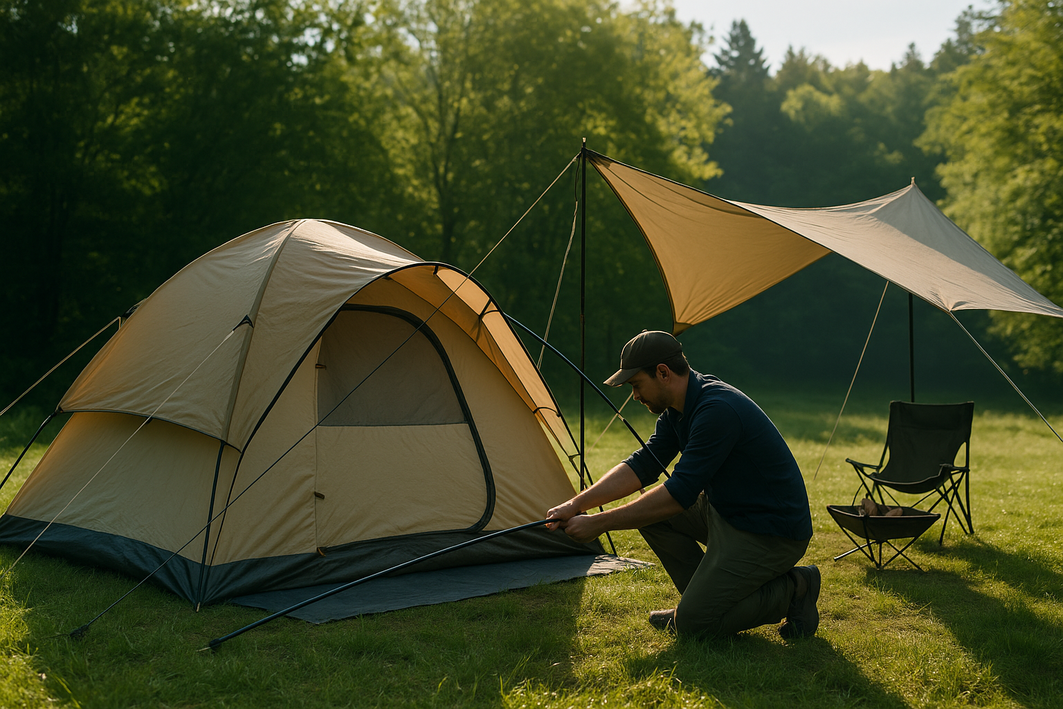 グランドシートを敷く、ペグを打つ、ロープを結ぶ──そのすべてが経験値になる。