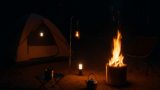 火を囲み、夜が深まる。テントの床の下では、地球の冷気が静かに動いている。
