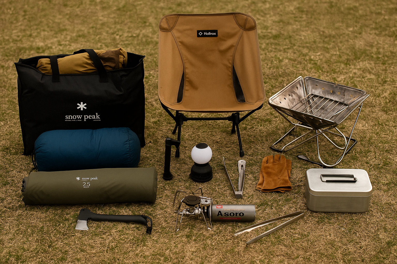 - A. 「寝る→明かり→座る→食べる」の順。僕は最初にマットへ投資して世界が変わった。メーカーの導線もほぼ同じ考え方だよ → Snow Peak 入門ガイド