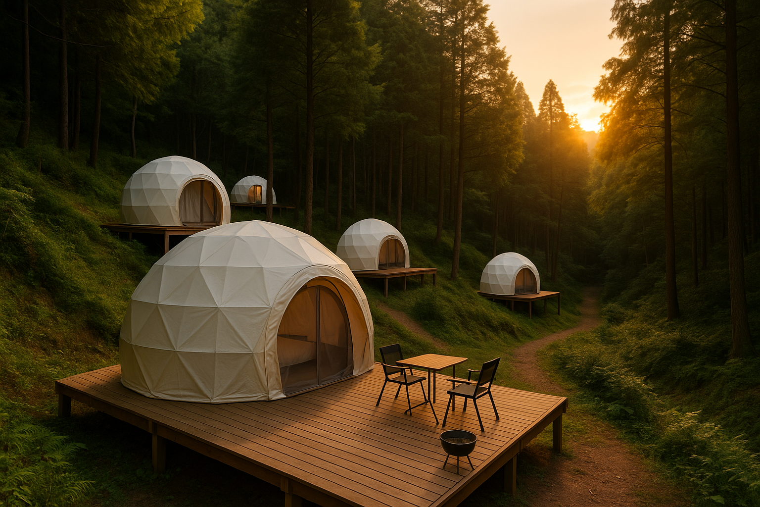 ┗ 常設ドームテント&冷暖房付きで、「キャンプ=しんどい」を塗り替えてくれる森のホテルみたいな場所。