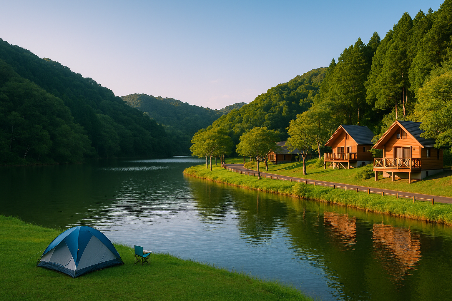 • 湖畔のコテージで“半アウトドア”を楽しめる 伊佐ノ浦公園
