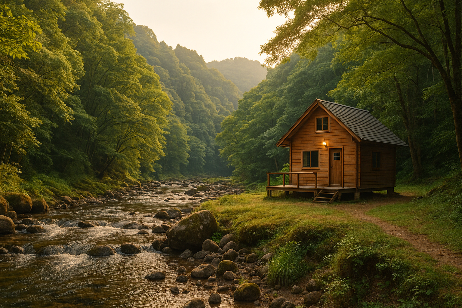 9. 9. 富川渓谷バンガロー|テントが不安なら“渓谷の小さな家”から