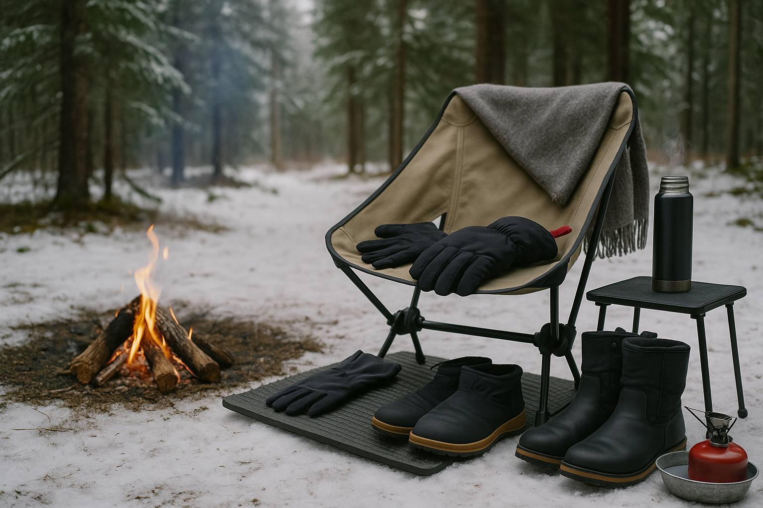 ・座っている時間が長い冬は、足裏とふくらはぎの断熱が“焚き火時間”を直撃。ソックス交換+インソール追加で持久力が段違い。 - 座る・寛ぐ:焚き火対応チェア(座面高30〜40cm推奨/やや前傾できる座角/難燃カバー)/断熱マット/ブランケット。