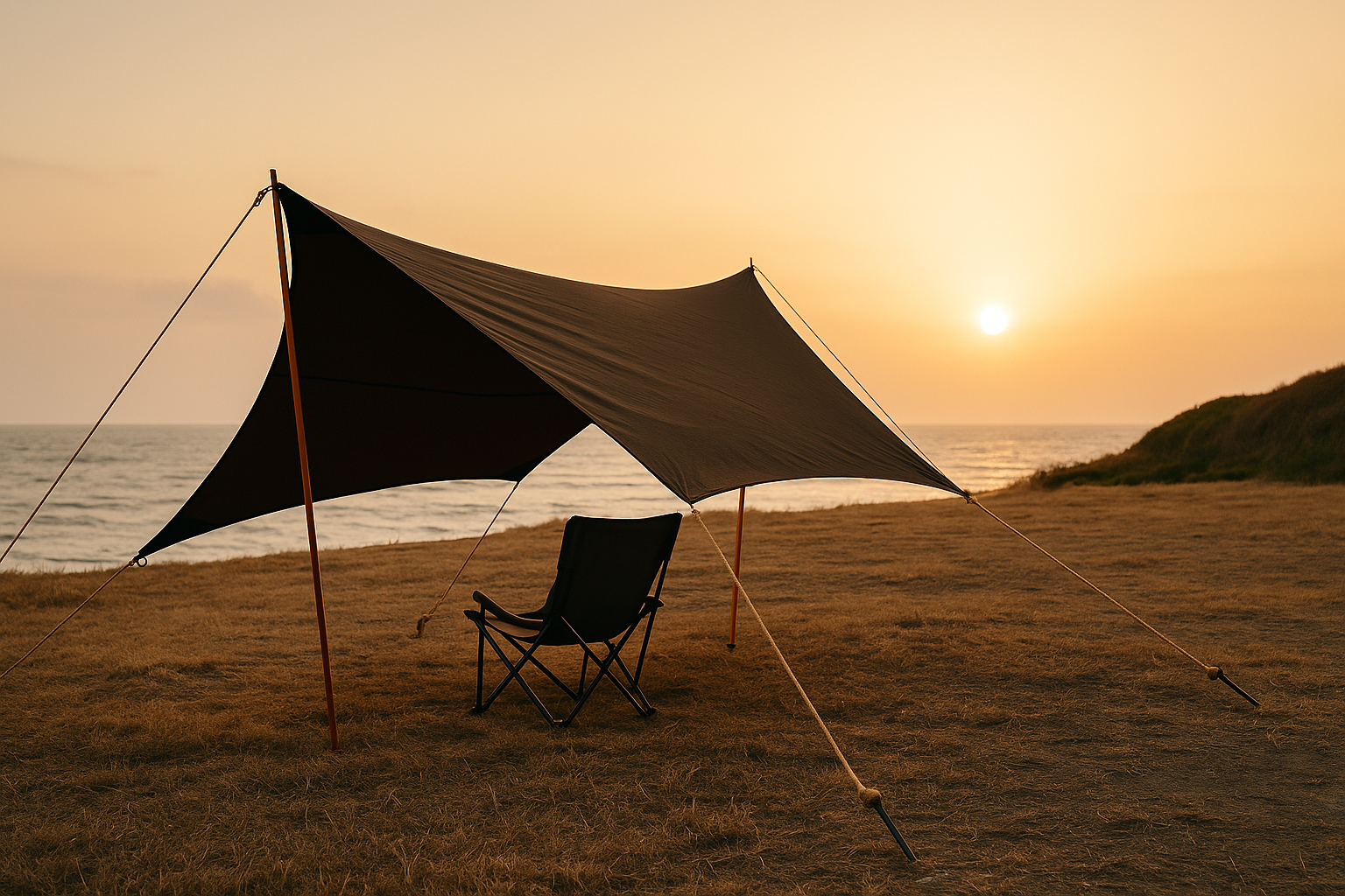 玄界灘クラスの海キャンプでも、タープをだいぶ安心して使えるようになります。