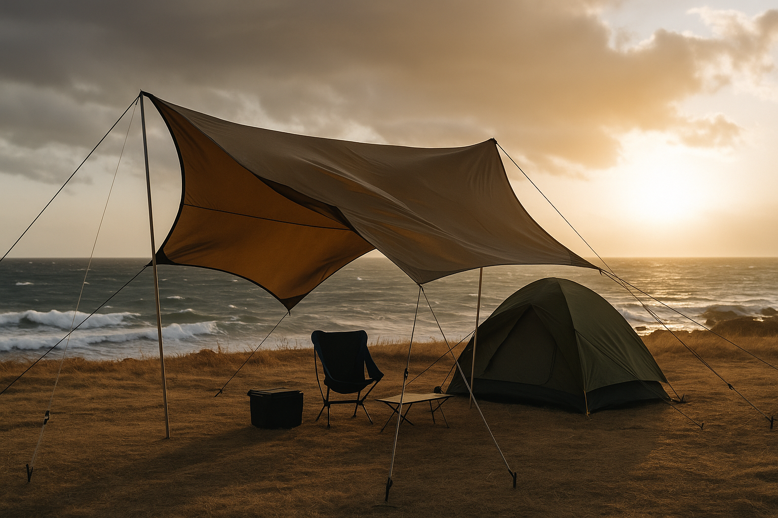 タープは低く・面積小さめ・風上をしっかり落とす前提なら、まだ楽しめるゾーン。